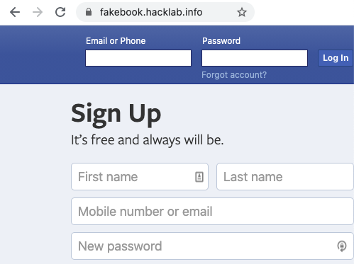 In the example above, the metadata provided by the browser (fakebook.hacklab.info) is an indication that, while all the content may look exactly like the real Facebook login page, the page doesn’t belong to Facebook. It’s far easier than you might think to create identical copies of the web page content.