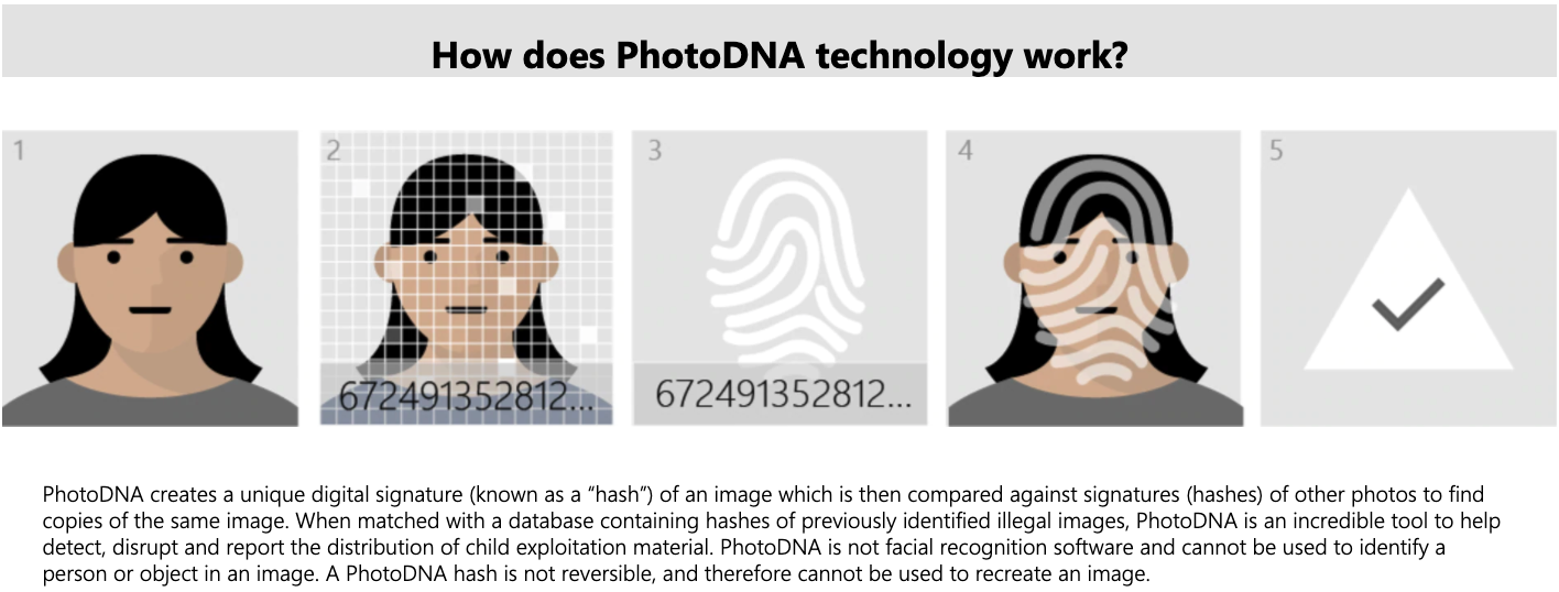 Figure 9: How PhotoDNA works. (Source: Microsoft70)