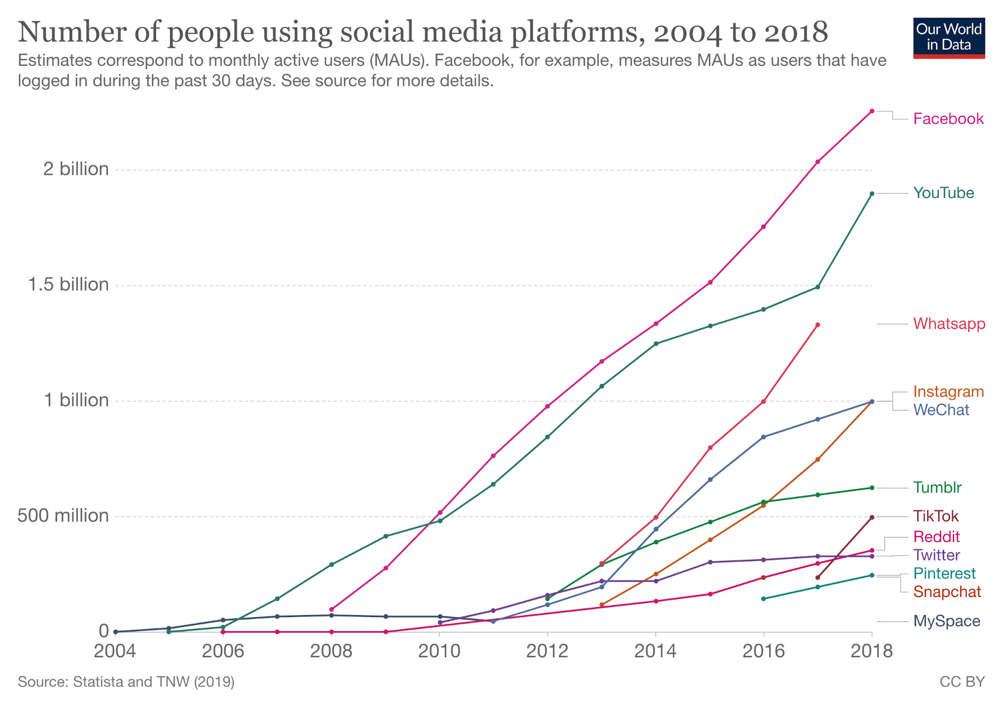 Figure 4: Social media users over time. (Source: Our World in Data38)